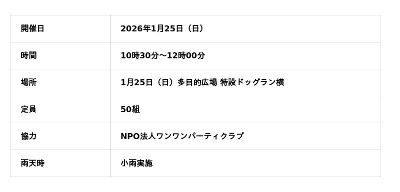 2026年3月には、大草原エリアで「Sippo Festa(しっぽフェスタ)」が開催されます。嗅覚を使った探知系アクティビティを体験できる「ノーズワークスポーツ体験会」や、飼い主さんとワンちゃんが一緒に参加できる「わんわんゲーム大会」など、様々なプログラムが盛りだくさんです。