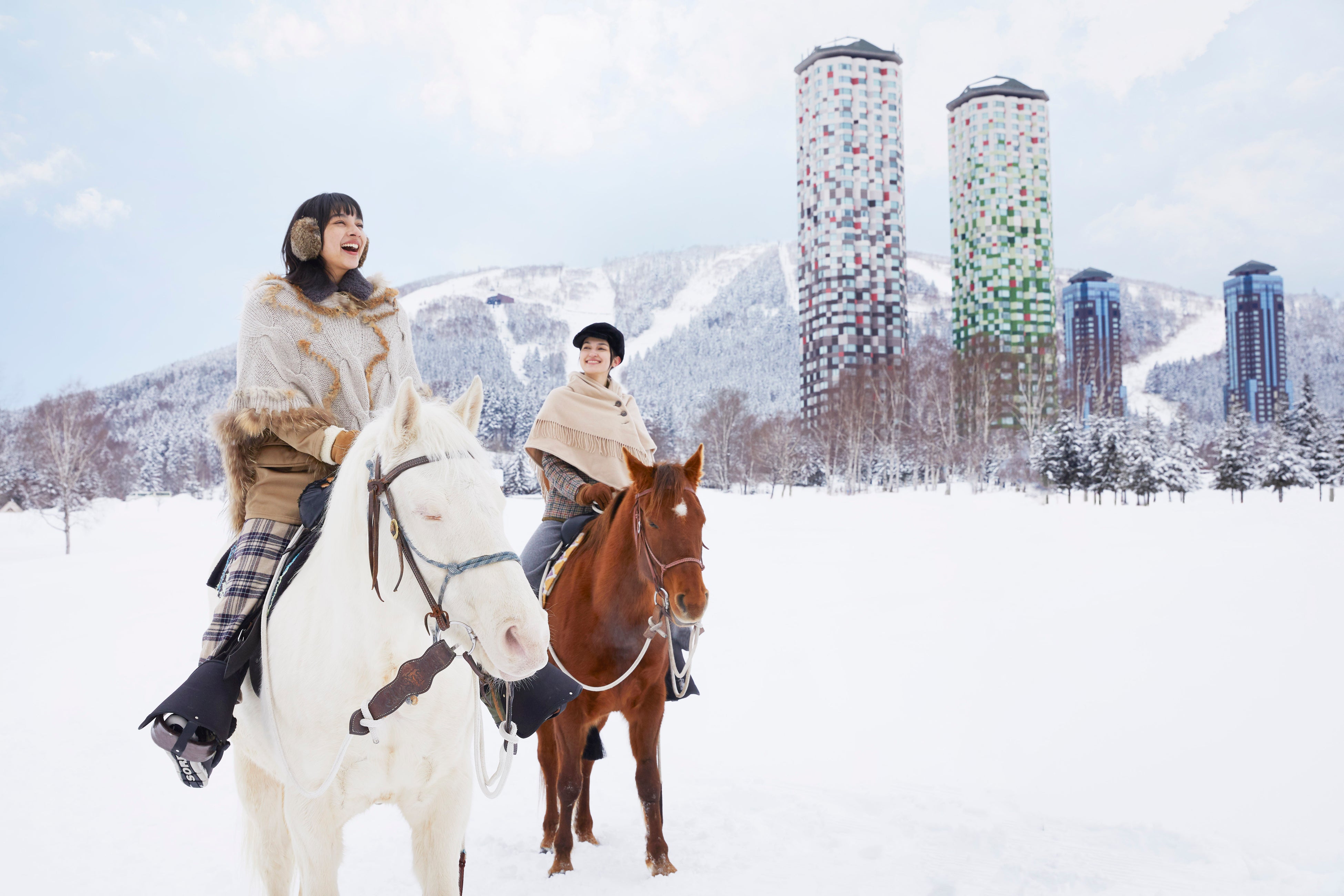 見渡す限りの銀世界が広がる冬のトマム。しんしんと雪が舞い散る静寂の中で、ふかふかのパウダースノーを踏みしめる馬の背に揺られ、広大な雪原へと進みます。360度広がる圧倒的な白銀の世界で、馬の温もりを間近に感じながら、幻想的な非日常の時間を過ごせます。スタッフが綱を持つ「引き馬」スタイルなので、乗馬経験がない方でも安心して参加できます(*)。