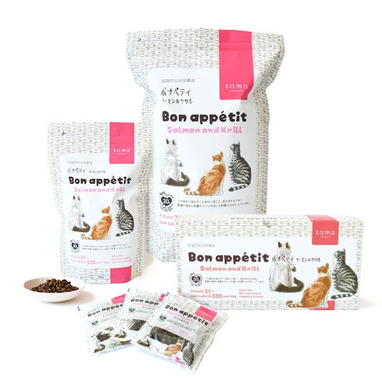 そして、2019年2月からはオリジナル総合栄養食の展開を開始。室内で暮らす猫の健康にこだわって開発したプレミアム品質の総合栄養食「tama ボナペティ」シリーズの発売を皮切りに、2023年11月からはボナペティシリーズよりウェットフード(総合栄養食)6種を発売、同年2月には「療法食 パウダーフード 腎臓ケア」を発売しました。これからも、猫がおいしく食べてずっと健康でいられることを願い、猫のことを大切に想う人たちと共に学び、成長しながらより良いサービスと品揃えを目指して参ります。