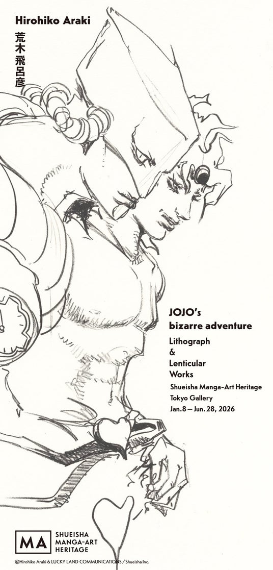 荒木飛呂彦『ジョジョの奇妙な冒険』のアートプリントを、東京初公開。2025年にMinnesota Street Project(サンフランシスコ)、東本願寺・白書院(京都府)で公開した作品の巡回展示となります。会期中展示替えを行い、順次、抽選販売を行います。