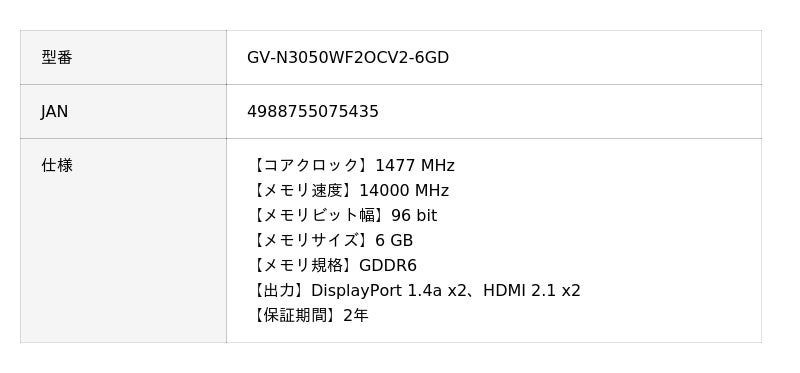 GV-N3050WF2OCV2-6GD | GIGABYTE(ギガバイト) NVIDIA GeForce RTX 3050 デュアルファン搭載 オーバークロック グラフィックボード