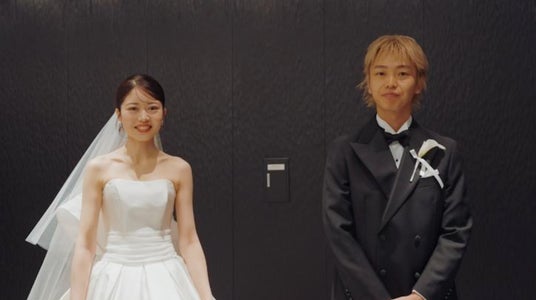 こうへいさんは遊び心のあるタキシードに身を包み、「この日のために染めました」という金髪で登場。あみさんは20着以上を試着した中から選び抜いた、背中側のデザインが帯のようになった美しいウエディングドレス姿で現れ、お互いの格好を知らないままファーストミートを迎えます。あみさんの姿を見て、「めちゃくちゃかっこいいじゃん…」と感慨深げなこうへいさん。あみさんは「こうちゃんもかっこいいよ」と口にすると、早くも目には涙があふれ、そっとハグ。「こうちゃんがスラっと立っている姿がめちゃくちゃかっこよくて、ぐっときてしまいました」と振り返ってくれました。