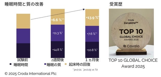 クローダジャパン株式会社(本社:東京都新宿区、代表取締役:リュー・ヨンチュアン)は、睡眠の質に着目し、睡眠中の肌再生とウェルビーイングを同時にサポートする新しい化粧品原料『ゼナカイン Zenakine(R)』を発売いたします。「もし、眠っている間にきれいになれたら」そんな多くの人が抱く願いを、ニューロサイエンスと皮膚科学の融合によって具現化したのが、夜美容原料『ゼナカイン』です。