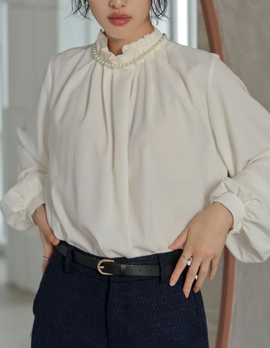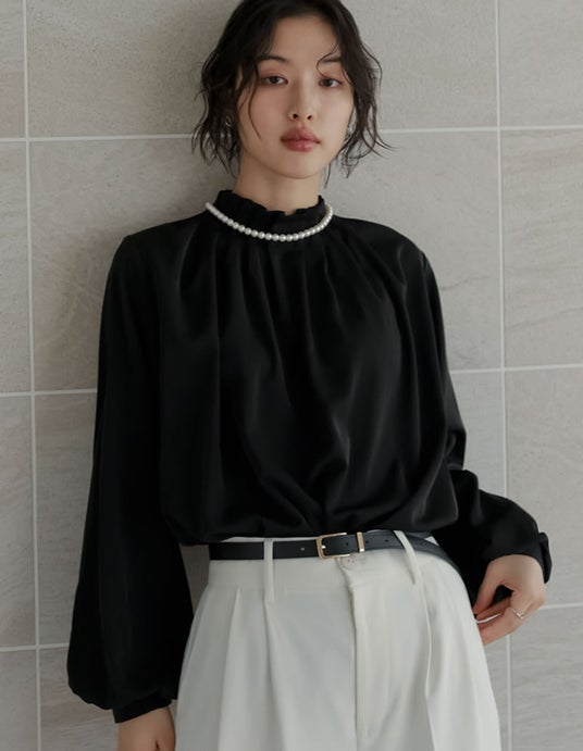 ブラウスと合わせて華やかに、普段はカットソーと合わせてカジュアルダウンも自在。