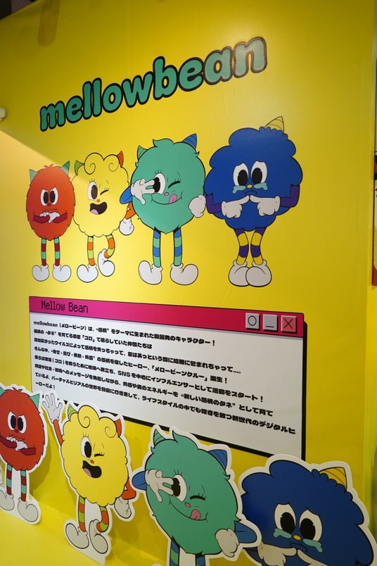 初日には、韓国のmellowbean Inc. CEO チェ・ジヒ氏も来日し、mellowbean(メロービーン)の世界を語りました。また、mellowbeanの特大オブジェの展示と、クリスマスとmellowbeanを掛け合わせた、クリスマスギフトのフォトスポットも、公開。