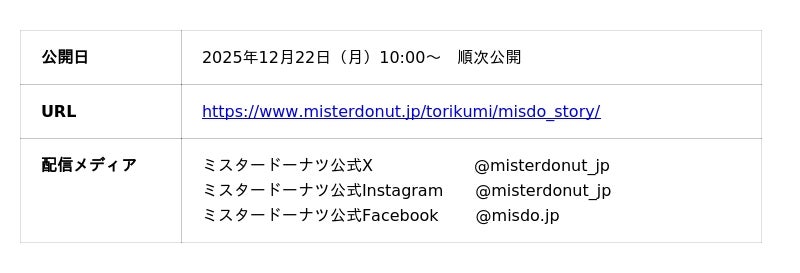 【ミスタードーナツ】12月22日(月)より『ミスドストーリー 優秀ショップ編』公式ホームページ・SNSにて順次公開