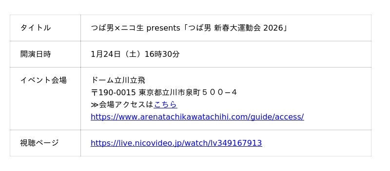 「つば男×ニコ生 presents『つば男 新春大運動会 2026』」