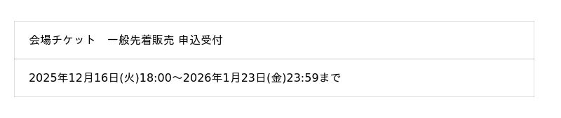 ※指定座席確定のため、1月5日(月)0:00~1月8日(木)11:59の間は販売を一時中止いたします。