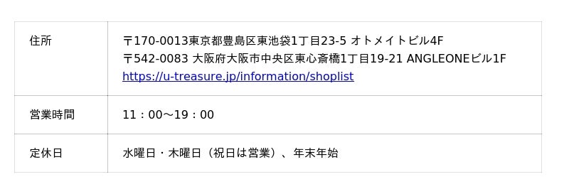 お客様のお問い合わせ窓口(ユートレジャーオンラインショップ)◆お問い合わせフォーム>> https://u-treasure.jp/contact