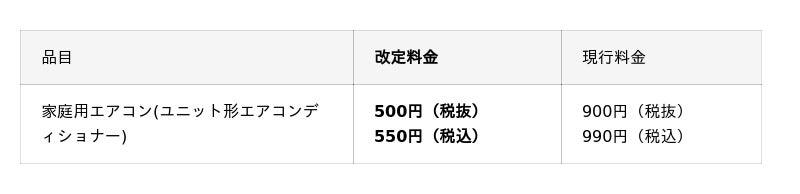 家庭用エアコンの家電リサイクル料金(再商品化等料金)改定について