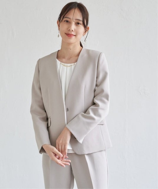 ウォッシャブルキーネックジャケット/グレージュ