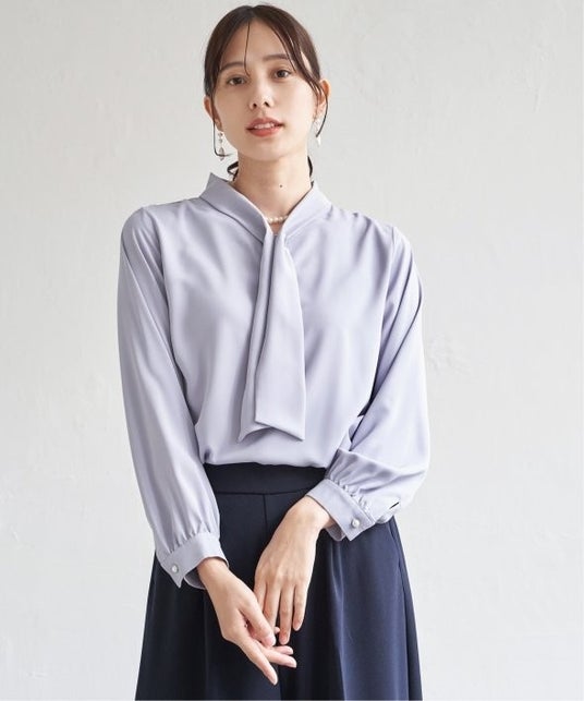 特 長:パール付きチャームでボウをとめた、新しいデザインのボウタイブラウス。