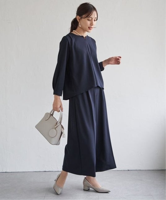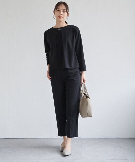 特 長:ペプラム切り替えのトップスと、シンプルでベーシックなテーパードパンツが揃ったセットアップ。上下別々でも着回しやすく、コーディネートの幅が広がります。ちょっとしたお呼ばれや学校行事など、きちんと見せたいシーンにぴったり。