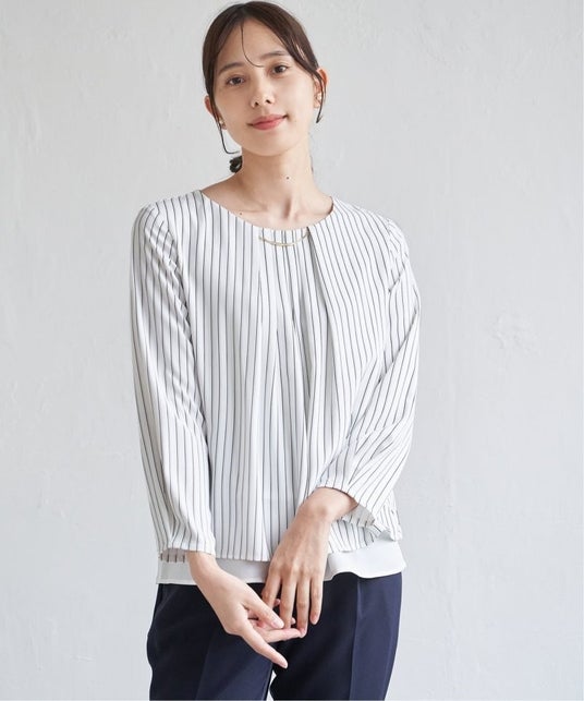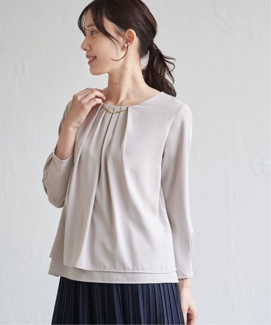 特 長:胸元に取り外し可能なチャームをあしらい、まるでアクセサリーをつけているかのように華やかに仕上げたブラウス。チャームは外してシンプルに着ることもでき、シーンや気分に合わせてスタイルを変えられる一枚。