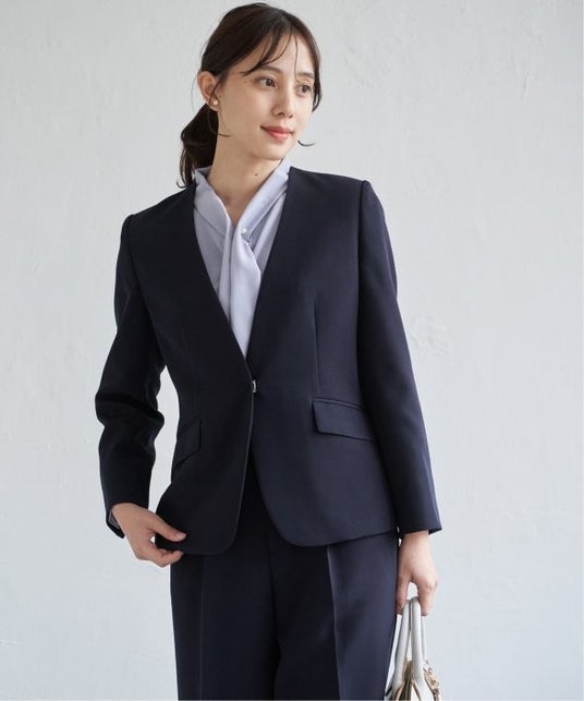 ウォッシャブルキーネックジャケット/ネイビーブルー