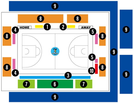 【ご注意】ホームベンチ、アウェーベンチの配置が他の会場と異なります。