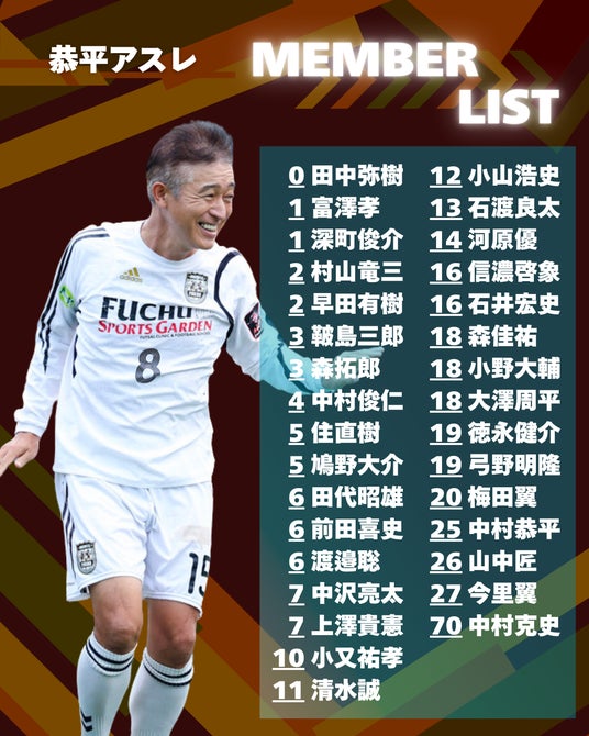 かつてクラブを支えたアスレ戦士たちが再集結し、現役選手たちとの一夜限りのスペシャルマッチを繰り広げます。ピッチに刻まれた歴史を知るOBたち、そして皆本選手のラストプレーを、ぜひ会場で見届けてください。