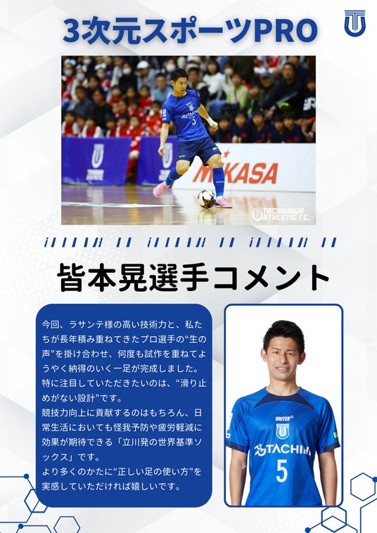 5本指ソックス専門店ラサンテ様と立川アスレティックFCが共同開発した、競技者向け5本指ソックス『3次元スポーツPRO』の会場販売が決定しました!