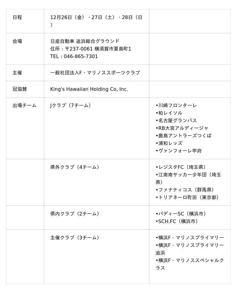 日本へ本格上陸したアメリカNo.1*人気スウィートロール「KING’S HAWAIIAN(キングスハワイアン)」(以下「KING’S HAWAIIAN」)は、2025年12月26日(金)より3日間にわたり開催される「2025 第32回 KING'S HAWAIIAN F・マリノス CUP U-10」に協賛いたします。