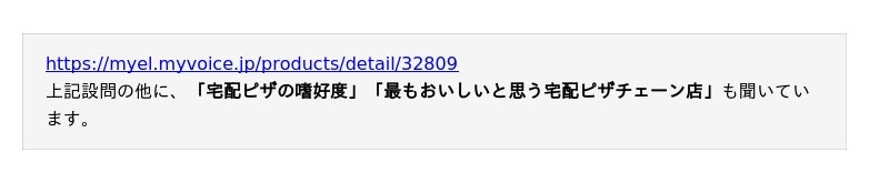 宅配ピザチェーン店の利用状況や重視点などについて聞いています。調査結果をお知らせします。