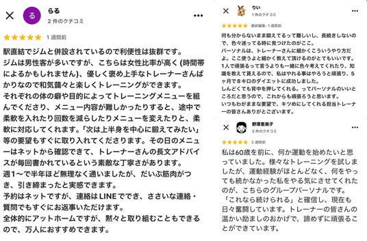 THE PERSON国分寺店は、Googleレビューで4.9点の高評価をいただいています。