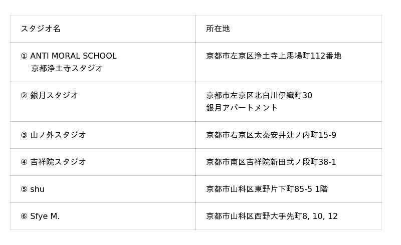 ※京都市左京区・右京区エリア(上記1.~3.のスタジオ)と南区・山科区エリア