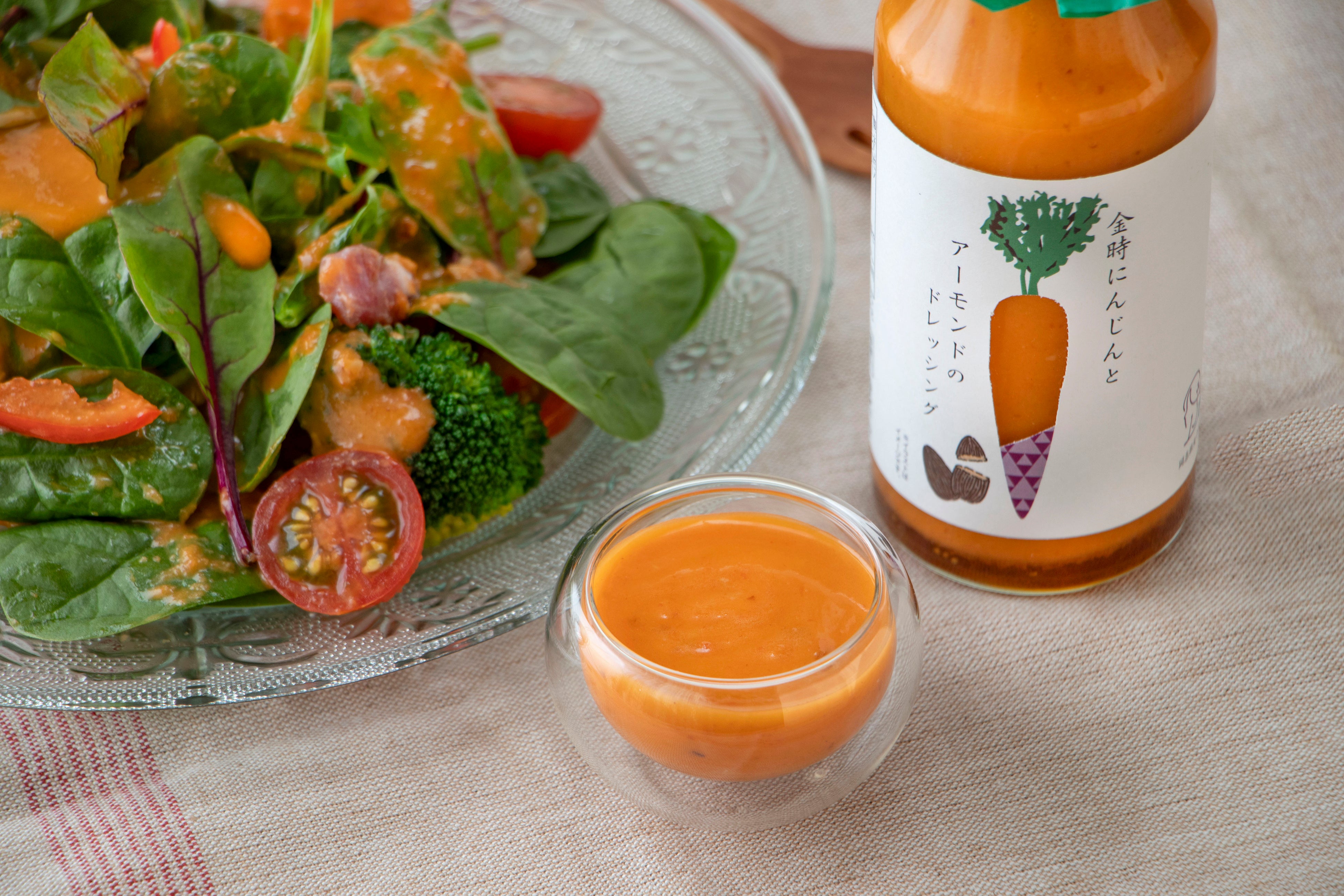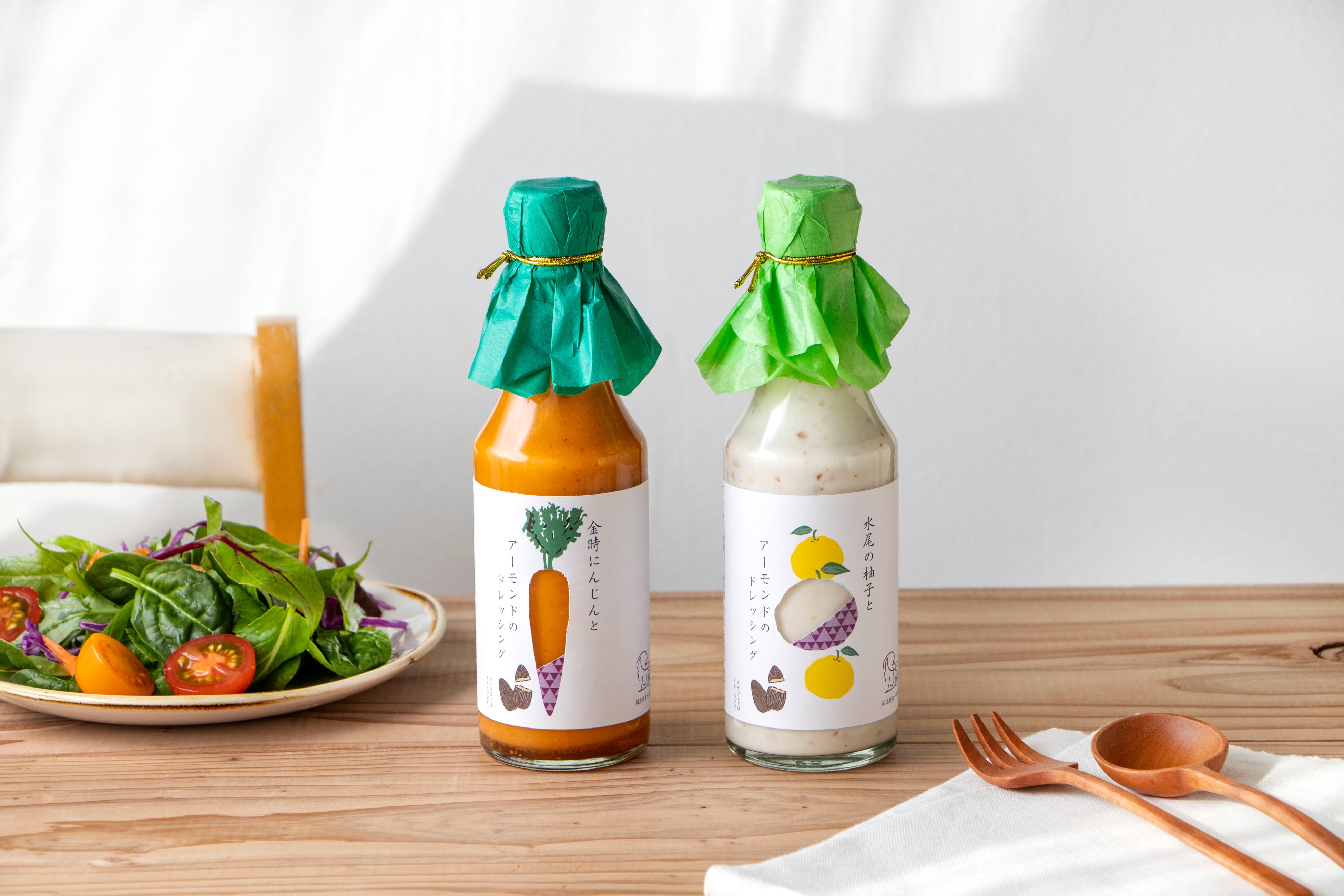 今回発売するのは、京都の農産物とナッツの相性に着目したドレッシング2種です。・金時にんじんとアーモンドのドレッシング