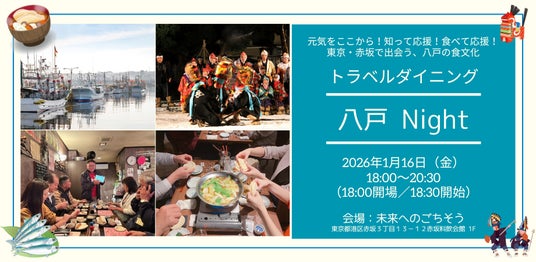 本企画では、東京・赤坂を起点に八戸の魅力を発信する「トラベルダイニング ― 八戸 Day&Night」の開催と、2月の八戸えんぶりの時期にあわせた「えんぶりツアー」の造成・販売を通じて、正しい情報発信と八戸の魅力発信、そして実際の来訪機会の創出を目指します。