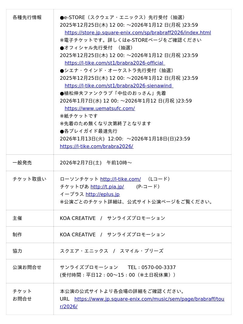 公式サイト https://www.jp.square-enix.com/music/sem/page/brabraff/tour/2026/