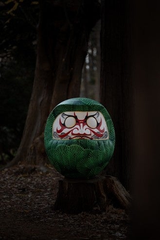 今回、初披露となる新プロダクト。縁起物の象徴である「だるま」をキャンバスに、歌舞伎の背景画に用いられる独特の色彩やモチーフを落とし込みました。