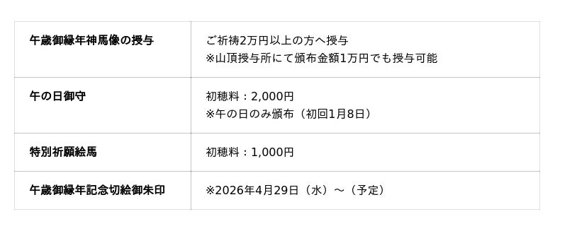 頒布期間:2026年1月1日(木)より通年予定(御朱印を除く)頒布場所:羽黒山頂授与所