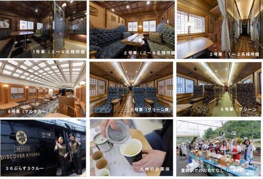 2020年10月16日に運行開始した「 36 ぷらす3 」は、九州7県を5日間かけてめぐり、九州 の魅力を“再発見”する旅をご提案しています。 これまでに約74,000名と多くのお客さまにご利 用 いただきました。この度ご好評いただいてい ます「1~2名様用個室」を現行3号車6室に加え、新 たに“6号車”に10室新設します。 お一人旅、ご夫婦、ご友人など少人数でお寛ぎ いただける空間で、九州の魅力に触れる旅をお楽しみ ください。