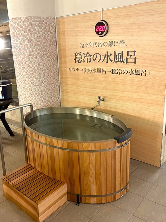 同施設には元々「炭の水風呂(備長炭清水風呂)」がありましたが、今回の追加導入によって男女ともに2種類の水風呂が楽しめる施設へと進化。