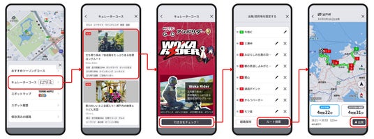 「MOTTO GO」は、バイク向けに最適化されたナビゲーションを、分かりやすい音声案内とシンプルで見やすい画面表示で行うバイク専用のナビゲーションアプリです。今回のアップデートでは、ツーリングキュレーターがお薦めするとっておきの景色やグルメ、走行時の思い出などを盛り込んだツーリングコース「キュレーターコース」を新たに追加しました。「MOTTO GO」アプリから各コースのお薦めポイントや紹介動画を閲覧でき、「そのコースを走りたい」と思えば、ルートを確認・探索するだけで、ツーリングに出発できます。また、「キュレーターコース」走行中には、さまざまなポイントでツーリングキュレーターからのコメントが自動発話されるので、気になるポイントを逃すことなく、快適なツーリングを楽しめます。
