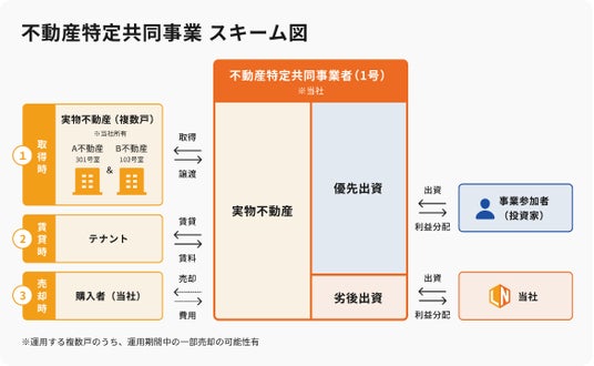 優先劣後割合:投資家(優先出資部分)89.99%、当社(劣後出資部分)10.01%