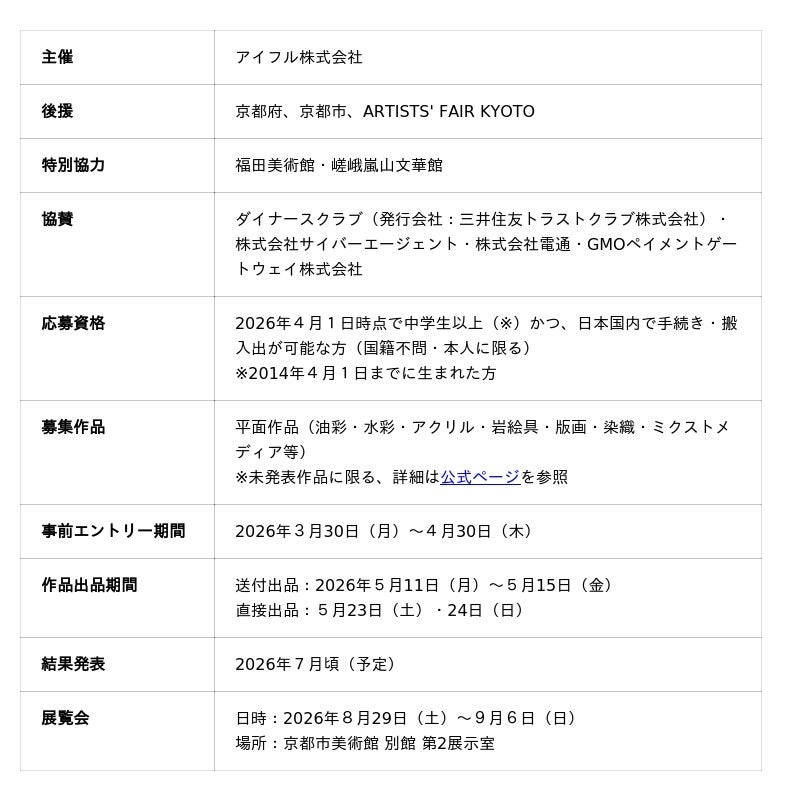 アイフル株式会社(代表取締役社長:福田光秀、以下「アイフル」)は、アイフルグループのサステナビリティ基本方針に掲げている「地域に根ざした活動」の一環として開催する美術公募展、
