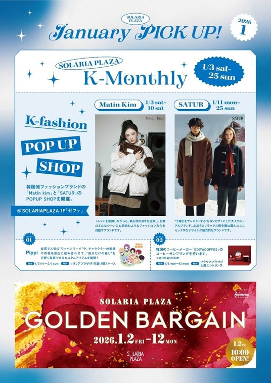 西日本鉄道株式会社が運営するソラリアプラザでは、2026年1月3日(土)~1月25日(日)の期間限定で、韓国ファッションや雑貨のポップアップショップが登場する「SOLARIA PLAZA K-Monthly」を開催いたします。