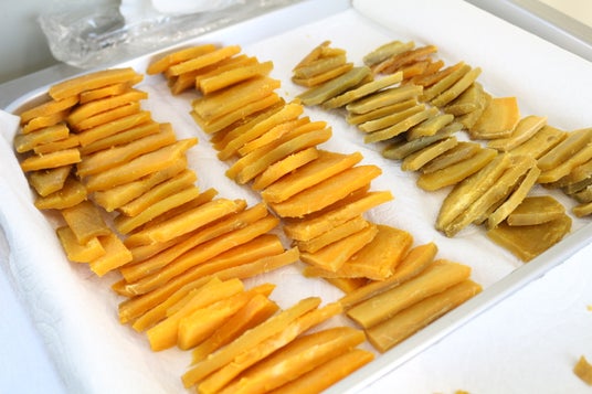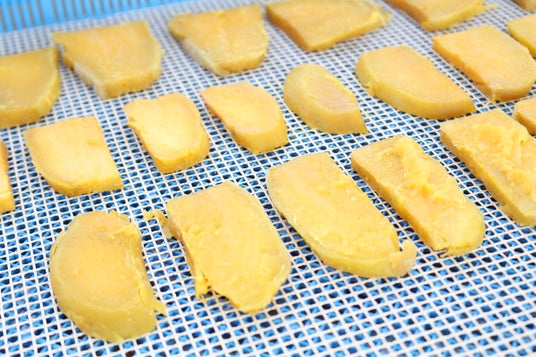 サツマイモを余分な部分をカットし蒸かした後、一枚ずつの状態を見ながら乾燥させます