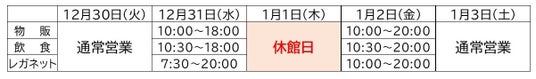 ※6Fローソンは、12月30日(火)~1月4日(日)の期間休業いたします。
