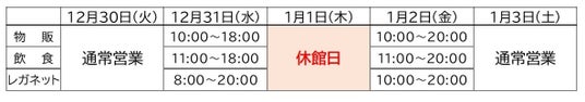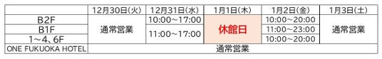 年末年始期間は、各商業施設で一部営業時間を変更し、下記の通り営業いたします。【ONE FUKUOKA BLDG.】