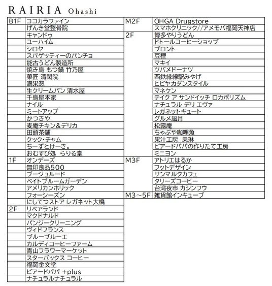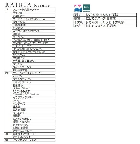 ソラリアステージ・レイリア大橋・レイリア久留米・西鉄ストア・レガネット
