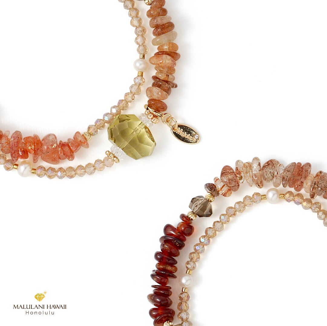 光と大地のエネルギーを宿す石で仕立てたブレスレットは、健康や厄除け、豊かさを引き寄せるお守りとして最適。
