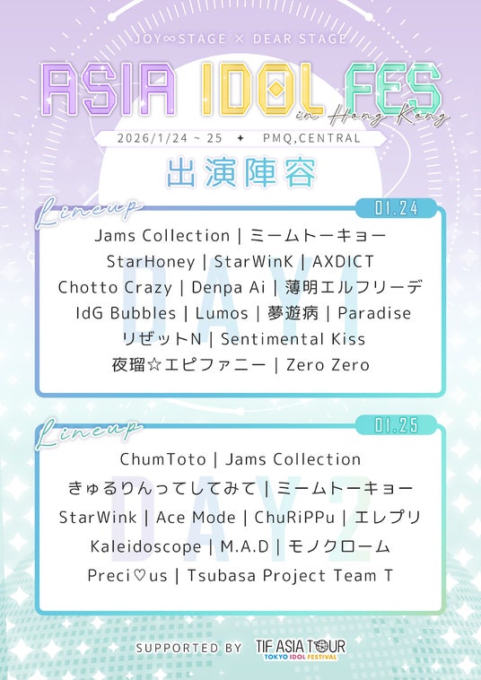 また本イベントは、世界最大級のアイドルフェス「TOKYO IDOL FESTIVAL」(以下、TIF)が、日本発の独自カルチャーである「アイドル」をアジアへ広く発信することを目的に、2021年より始動したプロジェクト『TIF ASIA TOUR』のサポートを受けて開催されます。