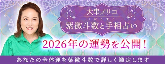 人気占いバラエティ番組出演で今大注目の鑑定士・大串ノリコが監修する、紫微斗数(しびとすう)と手相占いに特化したスマホ専用月額占いサイト『大串ノリコ 紫微斗数と手相占い』。現在『2026年の運勢|あなたの全体運を大串ノリコが紫微斗数で鑑定』を無料で公開中です。この機会にぜひご利用ください。