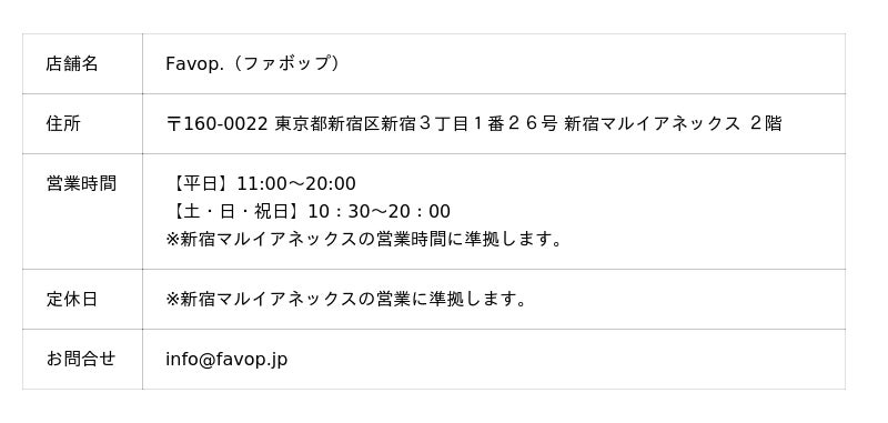 株式会社ディッジは、サブカルコンテンツアイテムを広く取り扱うグッズ専門店として新宿マルイアネックス2階に「Favop.(ファボップ)」を運営しております。