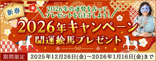 テレシスネットワーク株式会社(本社:東京都港区、代表取締役:鷹石惠充 https://www.telsys.co.jp/)は、2025年12月26日より、月額公式サイト『水晶玉子 陰陽艶花占』にて「2026年開運絵馬プレゼントキャンペーン」を公開いたしました。