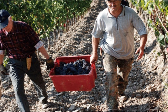 Harvest / 収穫ラ・ジェルラでは、収穫は厳密に手作業で行われます。なぜなら、熟練した経験豊富な作業員による注意深い選別能力は、いかなる機械でも代替できないと確信しているからです。慎重な「一次選果」を経て、本収穫は通常9月末に実施されます。輸送中の損傷を防ぎ、ブドウの健全性・完全性を保つため、15kgのみをケースに入れ慎重に醸造所に運ばれます。