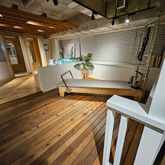 ウッド調の癒される空間でピラティスを楽しみましょう♪