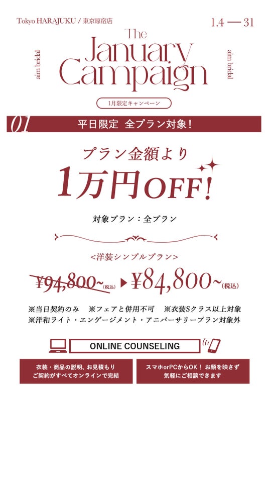 aim/aimme東京原宿店にて1月平日限定のキャンペーンを開催いたします。