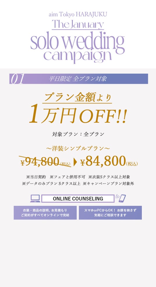 クリエイティブなコーディネート提案と圧倒的ビジュアルで人気のaim/aimme東京原宿店にて、お得に婚礼&ソロウェディング撮影、振袖&卒業袴レンタル/撮影が叶う平日限定キャンペーンを開催いたします。